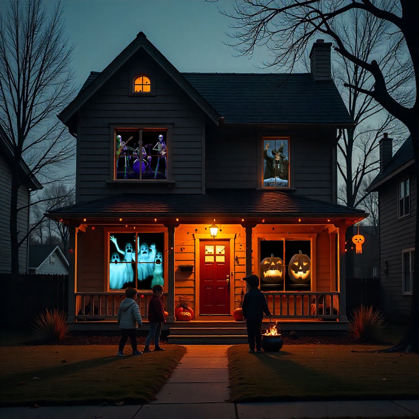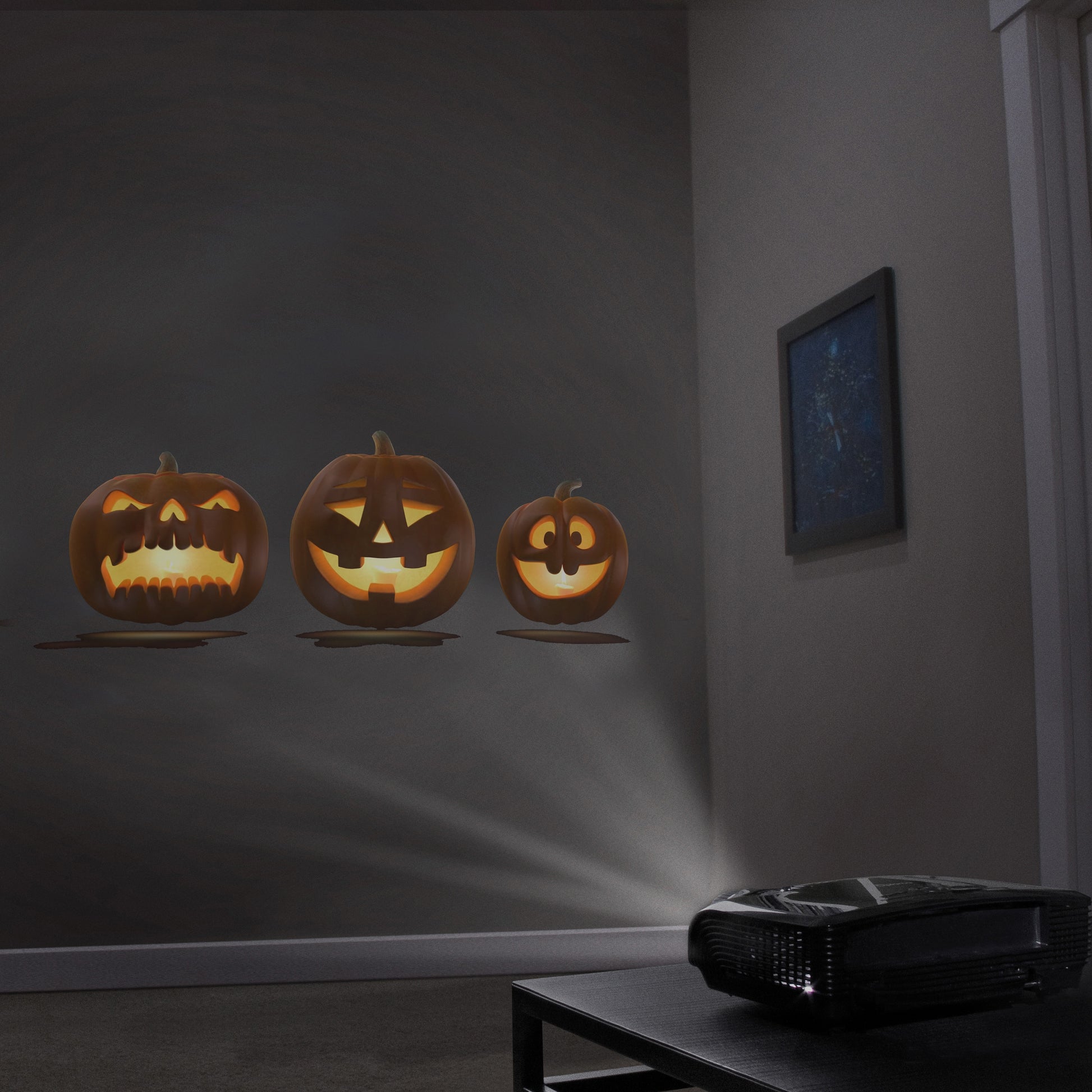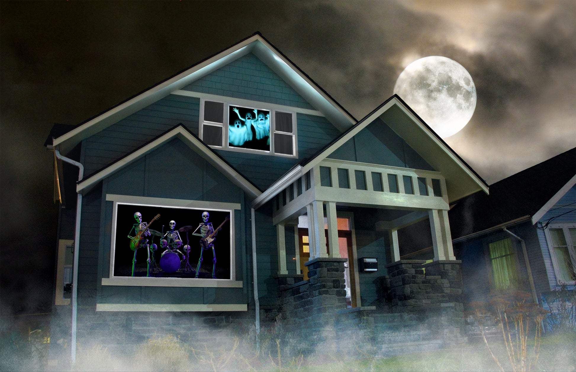• Use any TV, monitor, or projector to show off animated, entertaining digital decorations on your windows and walls, or on props, in yards, and elsewhere.