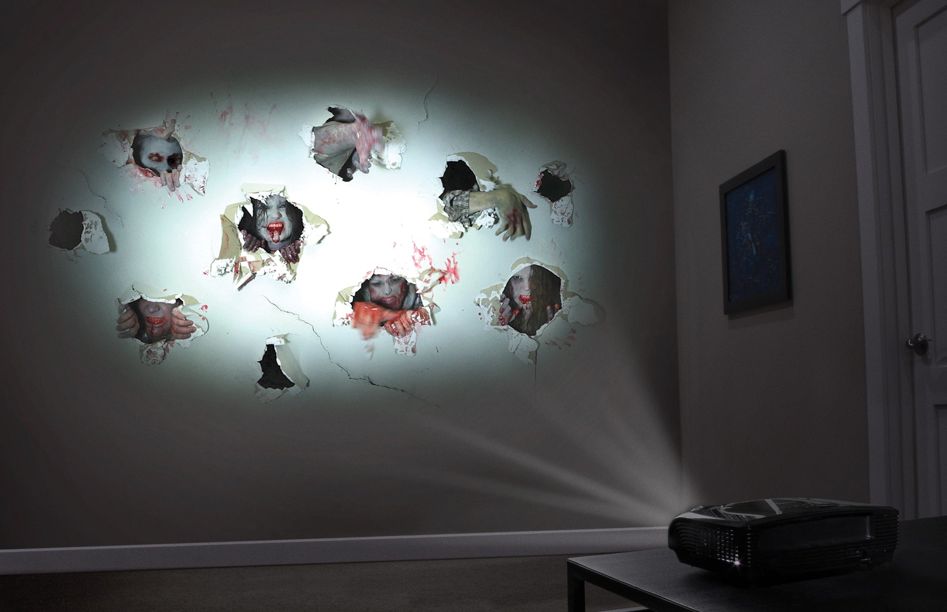 A hungry horde is coming to your home for Halloween – but they're seeking brains instead of a candy basket. Featuring a mob of murderous undead, the Zombie Invasion! Decoration Collection is not for the faint of heart. Whether you project the shambling silhouettes of the walking dead or the grisly, full-color scenes, this collection is sure to create the ultimate Halloween experience for any horror fan. Sheer terror when projected on windows or walls, this decoration is even unsettling when played on a TV/Monitor.