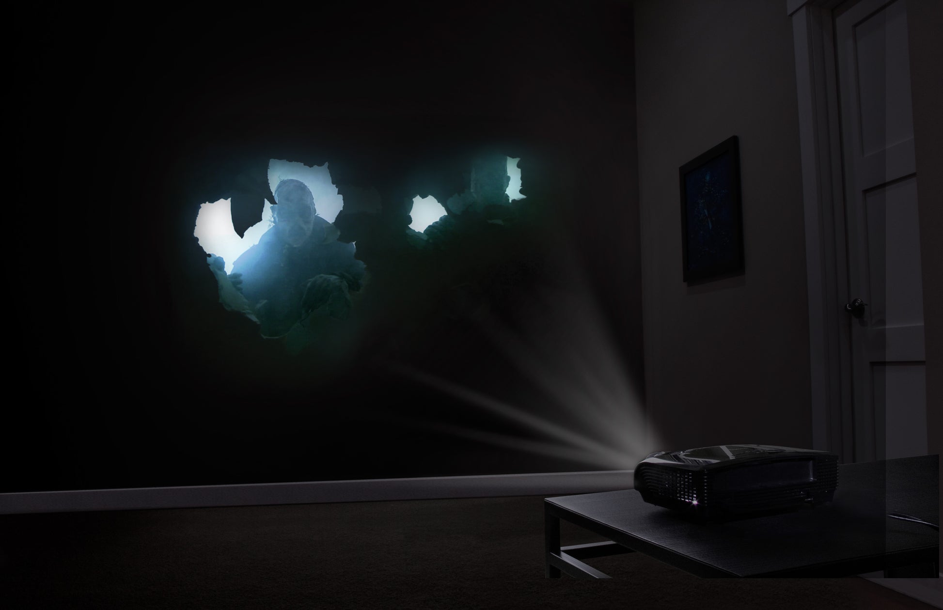 Set the tone for terror this Halloween when you project this horrifying homage to ’80s-era horror films. Presenting a murderer’s row of masked maniacs, the Night Stalkers Decoration Collection is not for the faint of heart. Featuring frightened “final girls” and their relentless pursuers who lurk in the shadows and fog, and smash their way through walls, doors, and windows. An outstanding decoration when projected on windows or creating a Hollusion effect in a door, it’s also a terrifying treat on walls or a TV/Monitor.