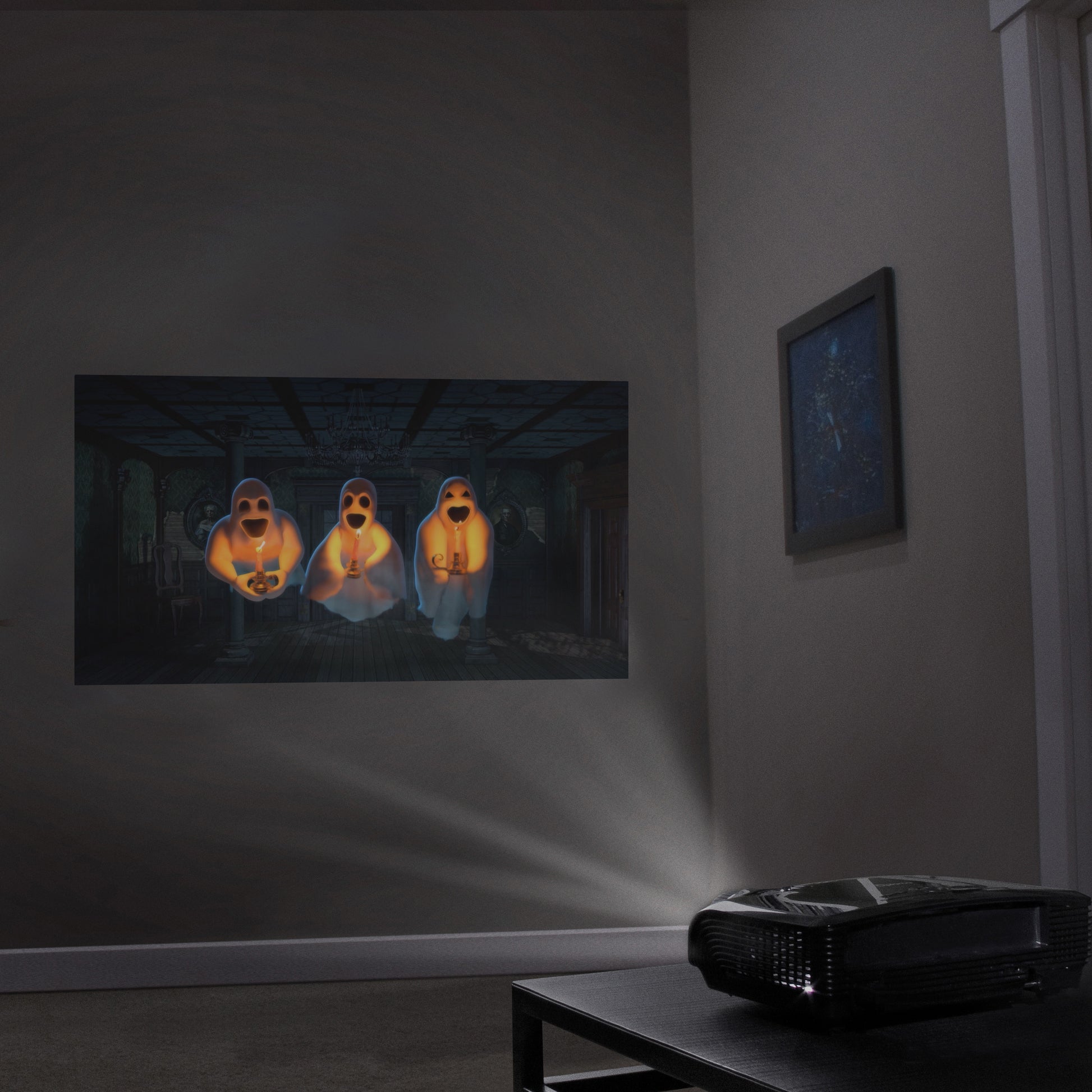 Halloween Digital Decoration Kit Includes 8 AtmosFX Video Effects for Halloween + HD Super Bright Projector + 48” x 72” Holographic Projection Screen