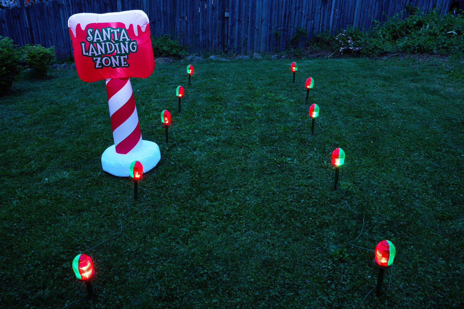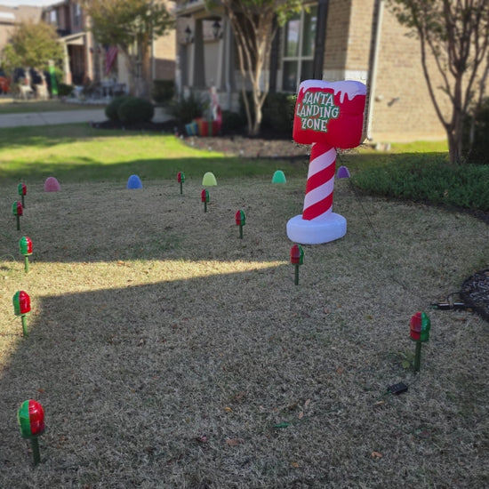 - Your kit includes: 10 Santa Runway Lights: (2) Sets of Five plus Lighted 4' Tall Santa Landing Zone Inflatable
